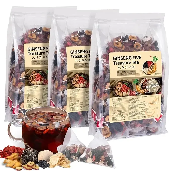 Crafted from premium natural ingredients such as ginseng, goji berry, yam, red dates, huang jing, mulberry, and maca. Each component is carefully selected and naturally dried to preserve its full nutritional value — with zero artificial additives, ensuring every sip is pure and safe.