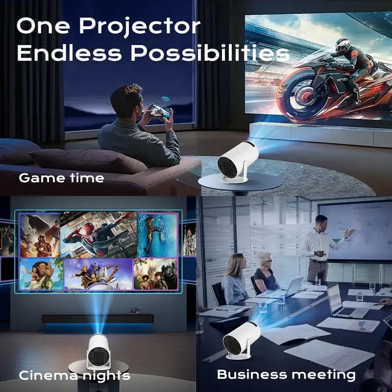 Projector HY300Pro+✨ Powerful Performance ✨ The HY300Pro+ projector delivers 290 ANSI Lumens with 4K Decode, ensuring crisp, vivid images. It features auto keystone correction for a perfect fit on any screen. The built-in 5W speaker enhances audio experience. Ideal for home cinema, it supports Android 11 with native 1280*720P resolution.🌐 Wireless Connectivity 🌐 Equipped with dual WiFi6 and Bluetooth 5.4, the HY300Pro+ offers seamless connectivity. This ensures stable and fast internet speeds, crucial for streaming and gaming. The projector is portable, making it perfect for movie theaters or home entertainment setups.🔧 Key Features 🔧 - 4K Decode for superior image quality. - 290 ANSI Lumens for bright, clear visuals. - Auto Keystone Correction for easy setup. - 5W built-in speaker for sound. - Dual WiFi6 and Bluetooth 5.4 for wireless connectivity. - Android 11 compatibility with 1280*720P resolution